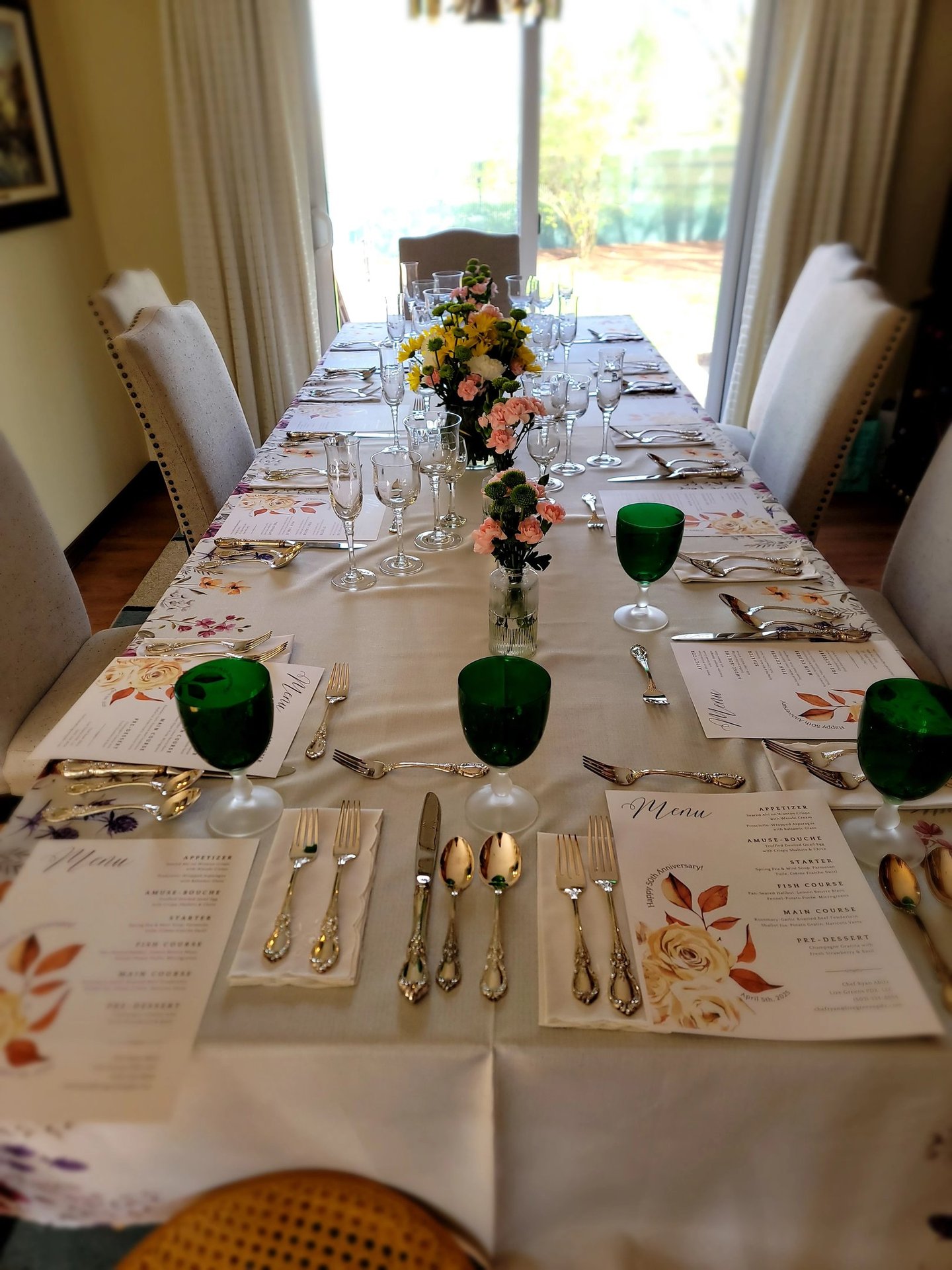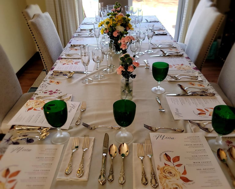 Relax and enjoy time with your guests while we handle everything such as menu planning, shopping, cooking, plating, and kitchen clean-up. Whether you’re hosting a cozy anniversary dinner or a multi-course gathering for up to 20 guests, you’ll receive a personalized dining experience crafted with care and detail.